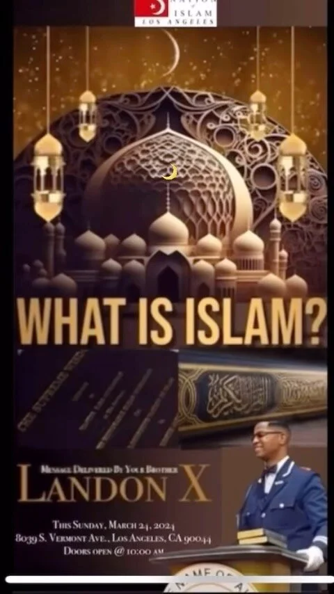 The Western Regional headquarters of the Nation of Islam is dedicated to spiritual advancement under the guidance of Allah (God), and the teachings of the Most Honorable Elijah Muhammad, through his representative the Honorable Minister Louis Farrakhan. All of our people who wish to experience the word of Allah (God) as it relates to our present-day condition and struggle for Freedom, Justice, and Equality are invited to reclaim their own and join the Nation of Islam.